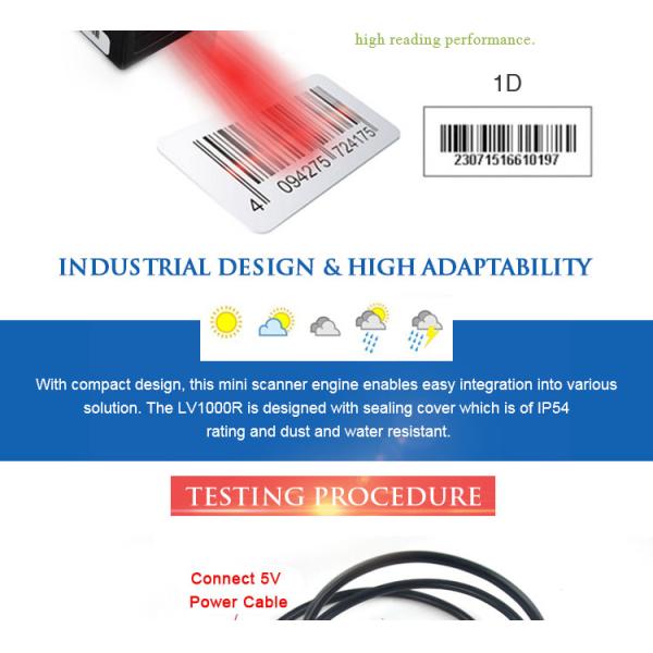 Payment Kiosk CCD 1D QR Code Scanner Module LV1000R IP54 RS232 / USB Interface Images |
